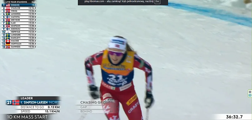 Jasmi Joensuu wygrała piąty etap cyklu Tour de Ski, czyli sprint stylem klasycznym kobiet w Val di Fiemme. Reprezentantka Finlandii odniosła pierwsze zwycięstwo w karierze i awansowała na pozycję wiceliderki TdS. Podium sobotnich zawodów uzupełniły Nadine Faehndrich ze Szwajcarii i Szwedka Johanna Hagstroem. Bardzo dobry wynik zanotowała także Monika Skinder, która uplasowała się na 15. pozycji, co jest wyrównaniem jej najlepszego rezultatu w karierze w Pucharze Świata. W rywalizacji mężczyzn klasę potwierdził Johannes Hoesflot Klaebo, który nie dał żadnych szans swoim rywalom i odniósł 104. zwycięstwo w PŚ. Oprócz Norwega na podium stanęli Jules Chappaz i Anton Grahn. Najlepiej z Polaków spisał się Kamil Bury, który zajął 20. miejsce.